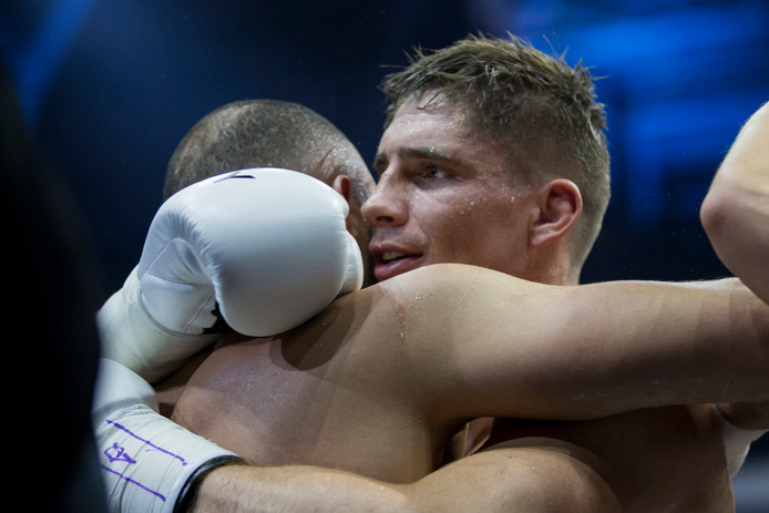 Als Badr in de hoek hangt, wachtend op de brandcard, omhelsen Badr en Rico elkaar. Lang en stevig. Ze praten, lachen zelfs even kort en al wat ik zie is respect. Waarom kunnen ‘we’ dat ook niet buiten de ring? Ondanks meningsverschillen, ondanks rivaliteit en ambitie zag ik twee sportieve mannen die elkaar als mens behandelde. Niet als schietschijf. Niet als vijand.